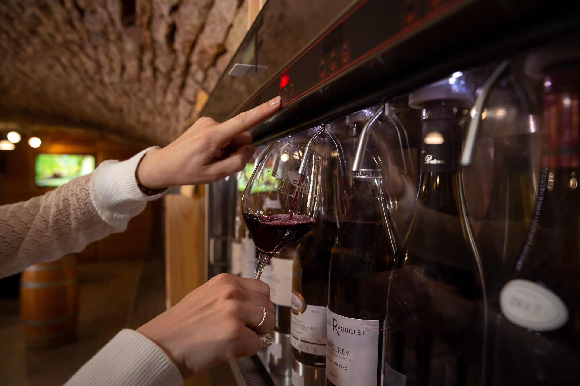 Le Caveau Divin brings white and red Mercurey Villages and Mercurey Premiers Crus together in one place. You can enjoy all the character of Mercurey’s terroirs and a wide variety of aromas thanks to the Enomatic wine dispensing system. Bottles are preserved with a neutral gas, preventing oxidisation and making this a unique, optimal wine-tasting experience. Enjoy the winemakers’ work, the diversity of our terroirs and our wines in this social setting at the heart of the village of Mercurey.